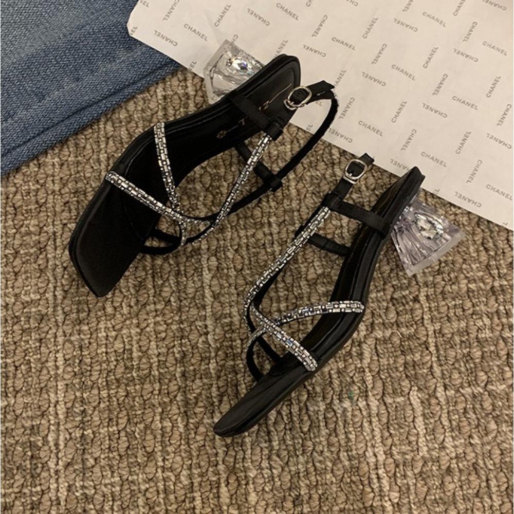 High Heeled Sandals Women Summer Straight Cut with Rhinestones Transparent Womens Sandals Crystal Heel Plus Size Women's Shoes
