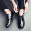 Teen black British small leather shoes men's versatile student round head lace-up casual shoes men's bright leather shoes