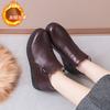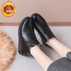 Thickened warm Chinese cotton shoes women's winter casual shoes fleece non-slip flat sole soft sole comfortable grandma leather shoes