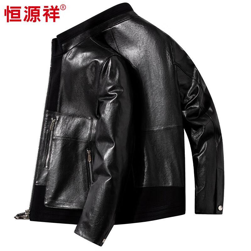 Hengyuanxiang Men's Lambskin Stand-Collar Leather Jacket