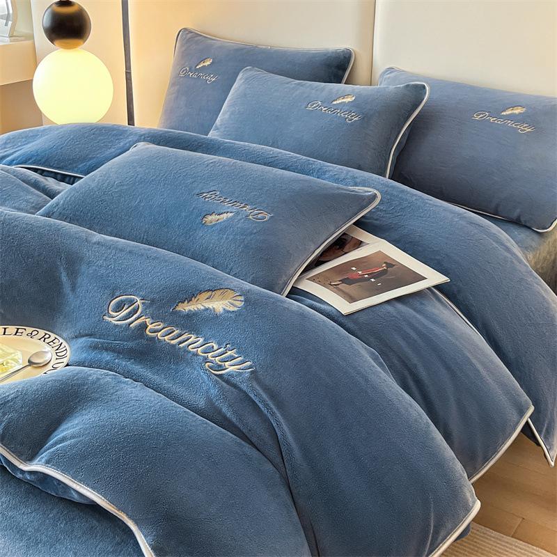 Class A Winter Double-Sided Velvet Coral Fleece Quilt Cover and Bed Sheet Set (4-Piece)