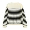 Paluo 100% Cashmere Striped Jacquard Round Neck Sweater