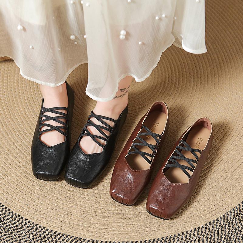 French square head cross belt Mary Jane shoes children's spring and autumn flat-soled single shoes shallow mouth soft-soled ballet shoes