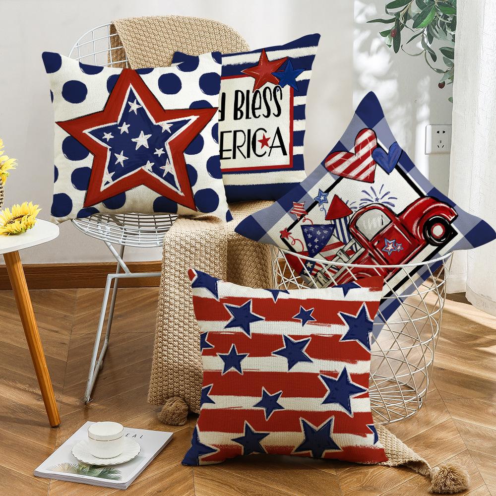 Home American Sofa Linen Square Cushion Cover Striped Letter Print Independence Day Pillow Cover