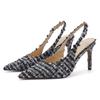New Designer Costume Tweed High Heels Women Sexy Pointed Toe Back Strap Heeled Sandals Summer Elegant Party Wedding Women Pumps