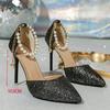 Gold Silver High Heels Sandals for Women Shiny Pu Leather Pointed Toe Party Shoes Pearl Ankle Buckle Decor Thin Heeled Sandals