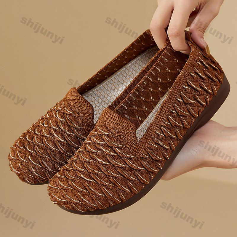 Women's Flats Summer New Fly Weave Breathable Slip on Casual Shoes Lightweight Comfortable Soft Sole Non Slip Vulcanized Shoes