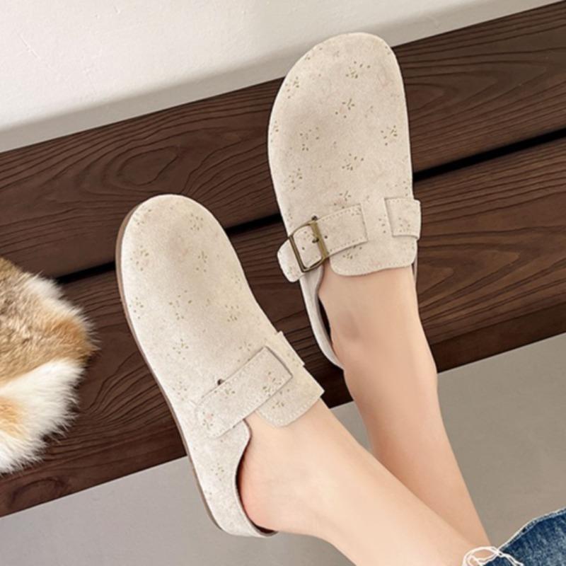 Flats Women Flower Mules Shoes Fashion Buckle Casual Slippers 2025 Designer New Slingback Sandals Elegant Autumn Zapatos Mujer