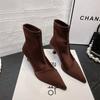 Women Pointed Toe Ankle Boots Elastic Leather Elegant Pumps Woman Autumn Winter New Sexy Party Chelsea Boots Socks Botas Mujer
