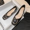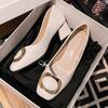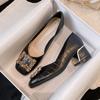 Mărimi mari 35 -43 Pantofi cu toc mediu pentru femei, cu vârf pătrat, pantofi de piele pentru doamne de birou, lanț metalic auriu mare, tălpi moi, pantofi slip-on