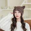 Big head circumference pile hat for women Japanese cartoon cute knitted hat rabbit ears hat Korean version warm ear hat cold hat
