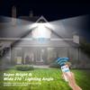172LED Solar Light Outdoor Waterproof with Motion Sensor Floodlight Remote Control 3 Modes for Patio Garage Backyard