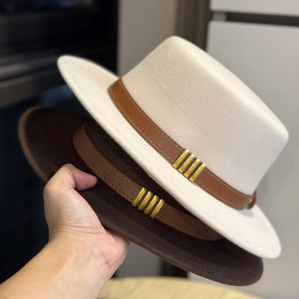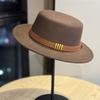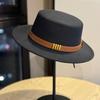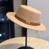 Hepburn Style French Belt Decorated Woolen Flat Top Hat for Women Autumn and Winter British Socialite Retro All Match Jazz Hat