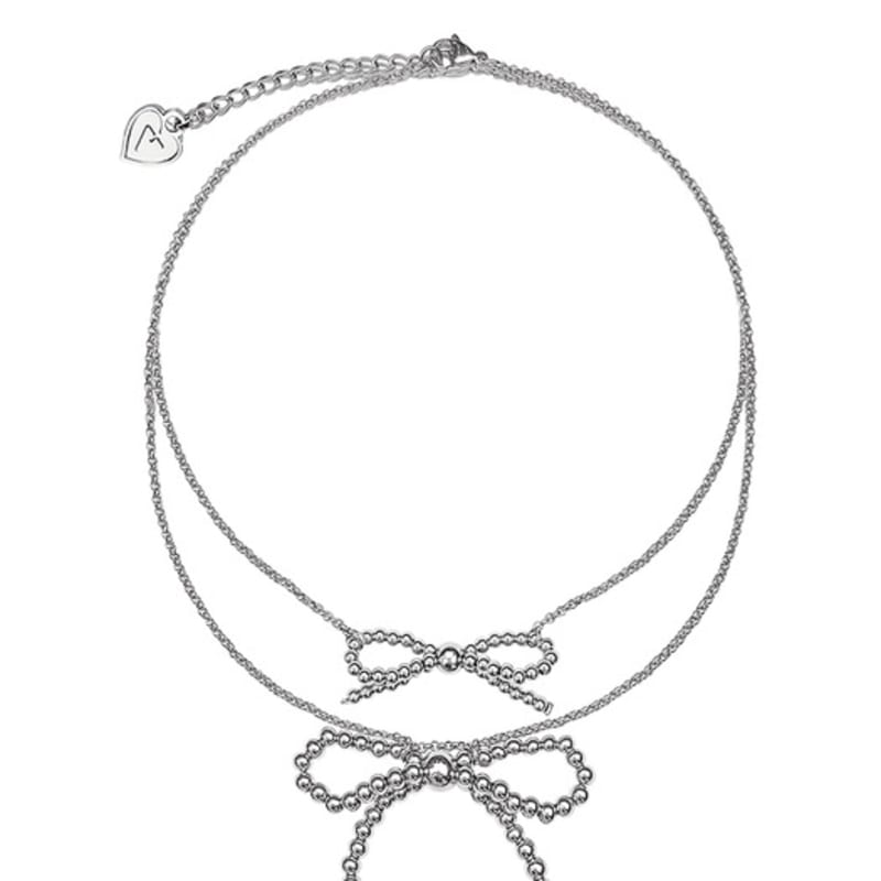 VVV Silver Beaded Surgical Ribbon Necklace