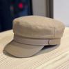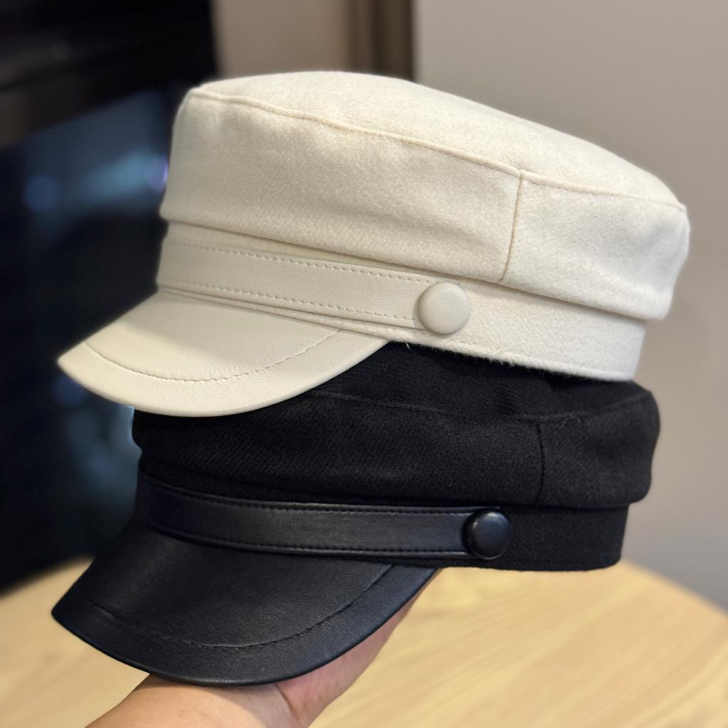 Retro PU Leather Autumn and Winter Woolen Hat for Women British Flat Top Cap Octagonal Hat for Cultural Travel