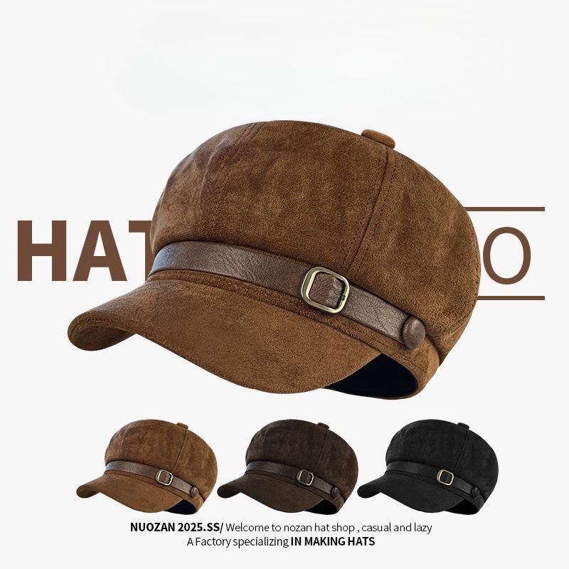 Retro Suede Beret Women's Autumn and Winter High Quality Face Showing Small Belt Octagonal Fashion Literary Painter Newsboy Hat