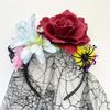 Caracteristici principale: Design Exagerat de Trandafir, Decorațiune Craniu și Mână Fantomă, Voal Negru, Ușor și Confortabil