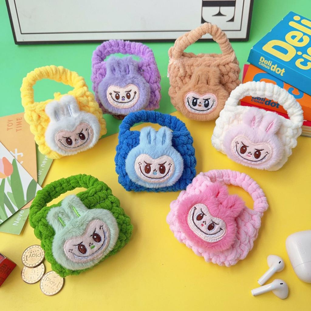 New Labubu Plush Wallet Hand Knitted Bluetooth Earphones Data Cable Storage Bag Protective Cover CLE
