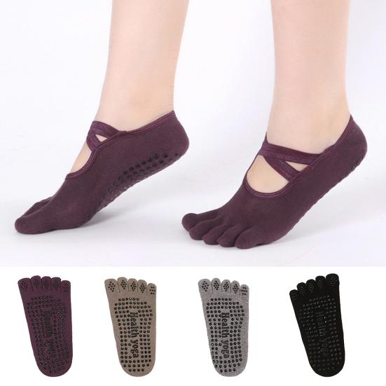 Șosete Sport din Bumbac Respirabil pentru Yoga, cu Prindere la Degete și Glezne, Cinci Degete, Ciorapi Antiderapanți