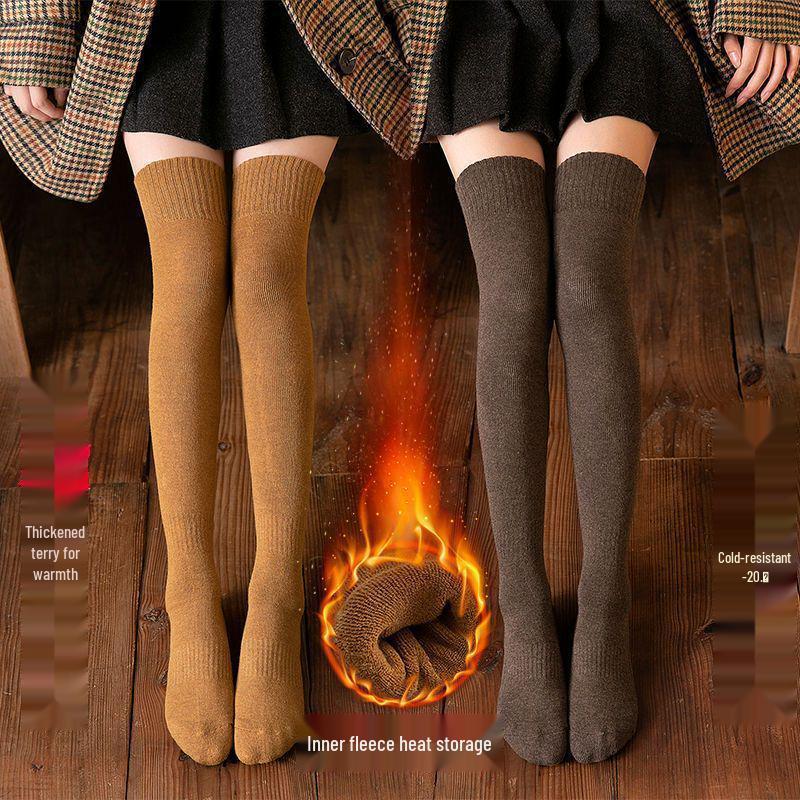 Women's Velvet-Lined Over-the-Knee Terry Socks – Thick, Warm, and Trendy Winter Mid-Tube Knee Pads