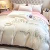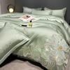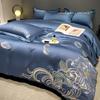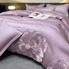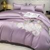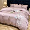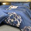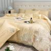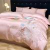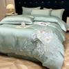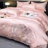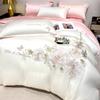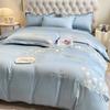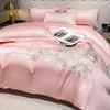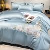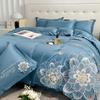 Set de pat din mătase de gheață, set din patru piese, broderie, prietenos cu pielea, respirabil, confortabil, cearceaf de pat, husă de pilotă, față de pernă