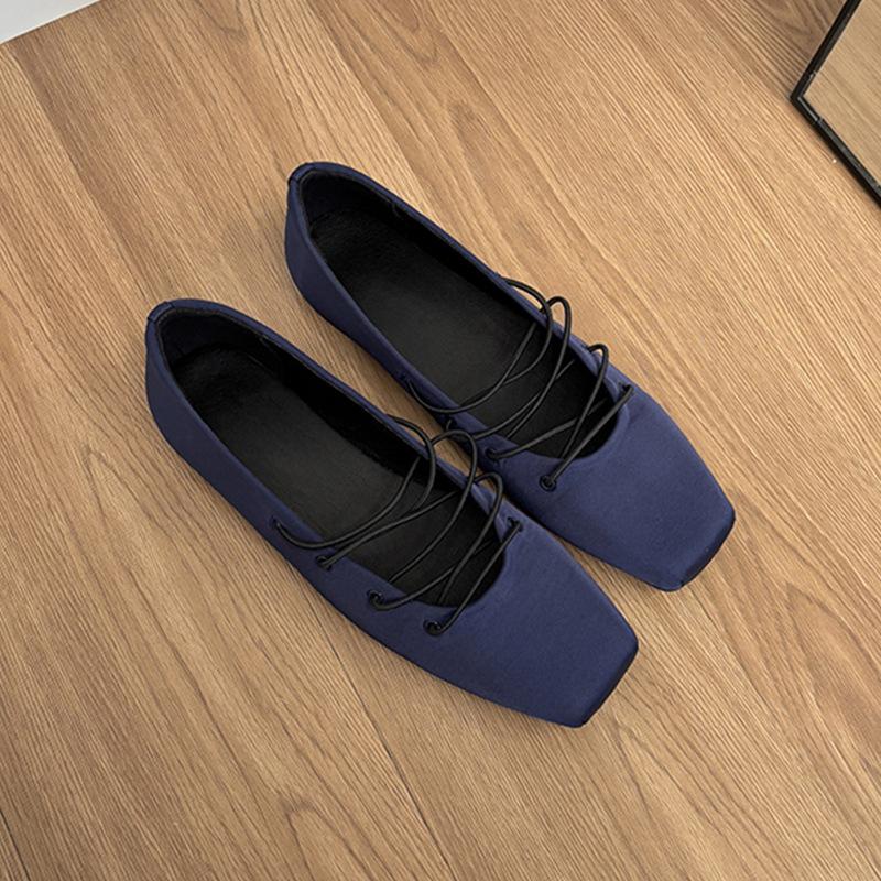 Sheepskin version~ New satin Mary Jane square head cross strap versatile ballet shoes light mouth versatile flat shoes