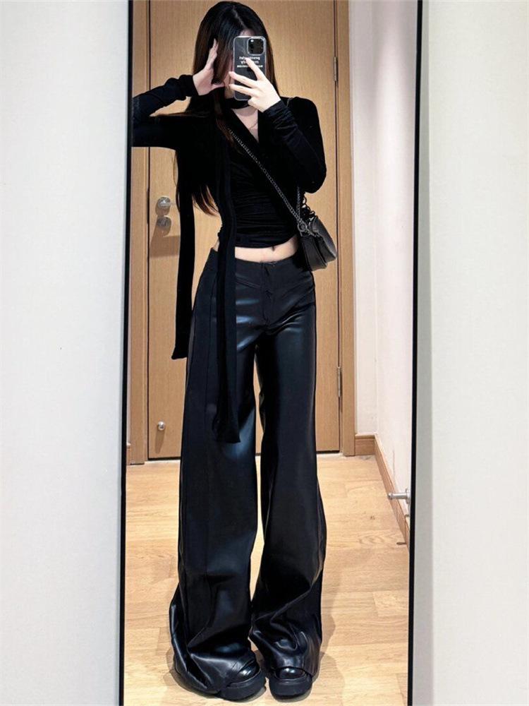 Elevate your autumn wardrobe with these chic high-waist flare pants designed specifically for plus-size women. Crafted from sleek PU leather, these pants offer a relaxed yet slimming drape that perfectly enhances your silhouette. Featuring a sportive style with a long, wide-leg design, they provide both comfort and a fashion-forward edge. The high waistline ensures a flattering fit, while the durable polyester material ensures longevity and easy maintenance. Ideal for a variety of occasions, these pants effortlessly blend style and comfort.
