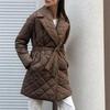 Palton Midi cu Model Diamant European & American 2022 cu Rever, cu Centură - Palton de Bumbac Slim Fit pentru Toamnă și Iarnă