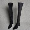 Modă de iarnă Bot ascuțit Femei Cizme lungi peste genunchi Stil stradal Tocuri groase Petrecere Stripper Pantofi de damă