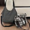 Chic Plaid Nylon Large Capacity Tote Bag Women Casual Top Handle Hobo Shoulder Shopper with Fixed Strap For Daily Work CLE
