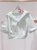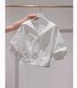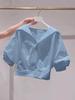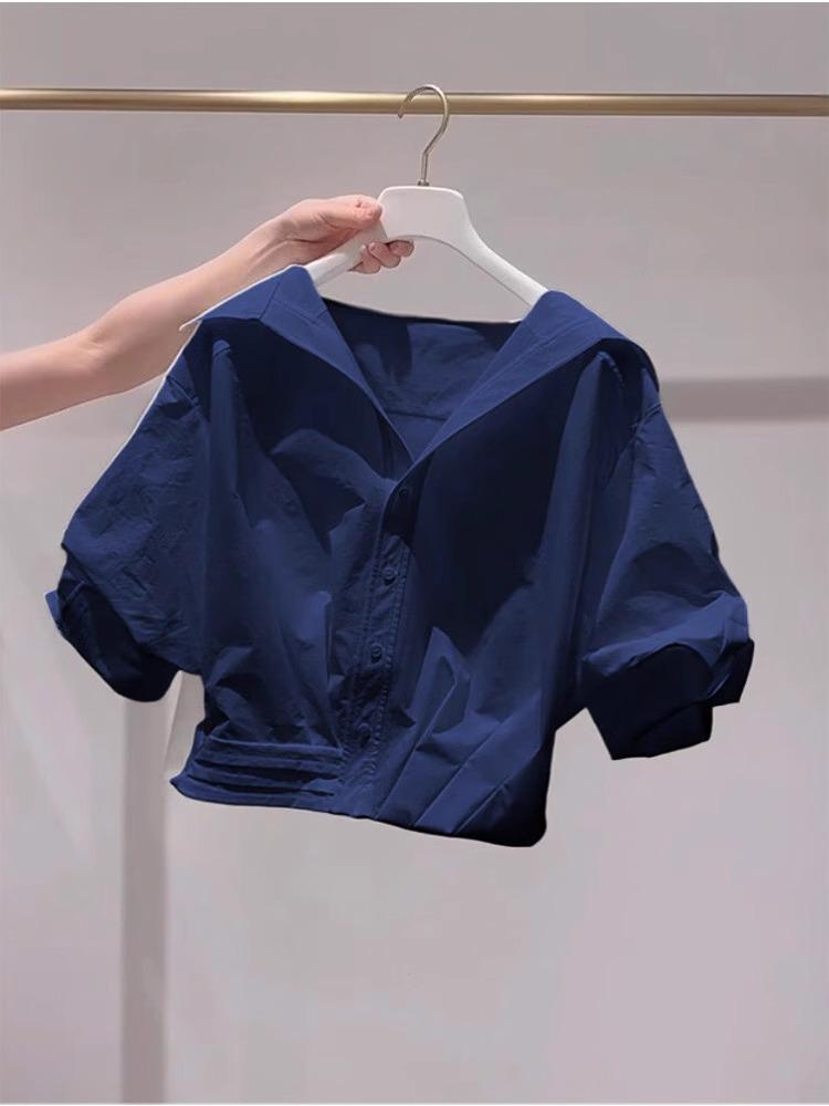 2025 Chic Navy Blue Turn-Down Collar Puff Sleeve Age-Reducing Women's Shirt