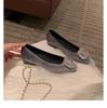 Sheepskin~ Grape Mom Noble Velvet Rhinestone Square Buckle Shallow Mouth Low Heel Single Shoes Women's Commuting Versatile Flat Bottom Banquet Shoes