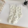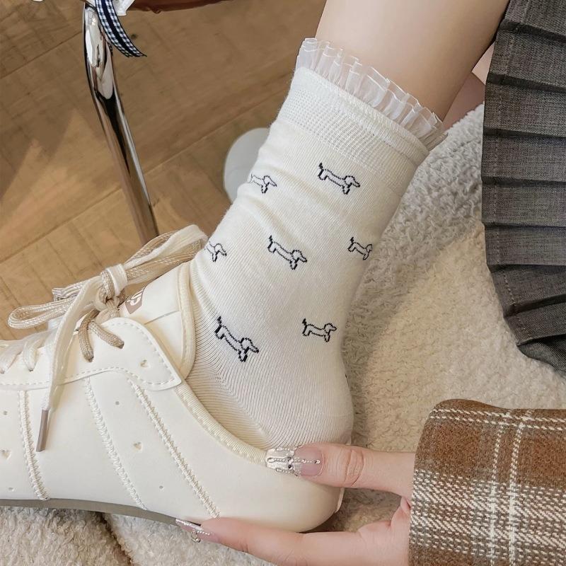 Lace Fringed Socks, Cute Girl Puppy, Mid-calf Pile Socks, Long Socks, Pure Cotton Socks