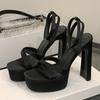 Eilyken Summer Extreme High Heels Square Toe Platform Women Sandals Narrow Band Buckle Strap Party Dress Shoes