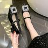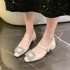 Mary Jane shoes thick heel high heels spring with skirt fairy shoes fashionable silver rhinestone single shoes