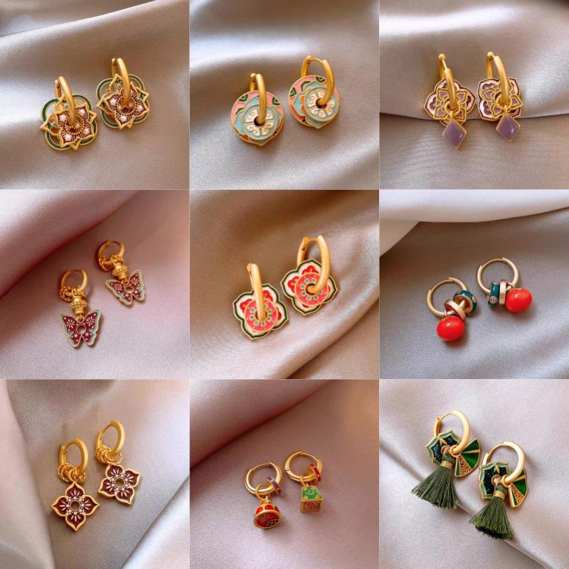 Manșete de urechi cu flori din email retro chinezesc: Cercei de lux cu zircon