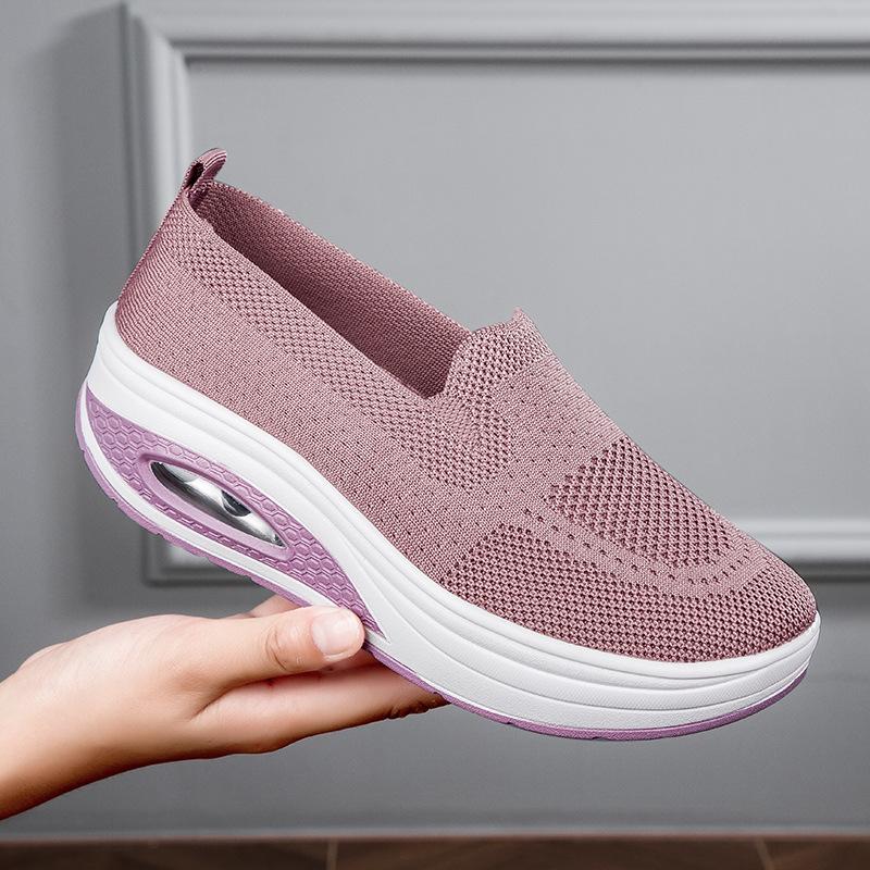Flying woven rocking shoes summer mesh air cushion walking shoes women's platform sports casual shoes women