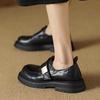 Soft leather buckle platform women's spring and autumn new retro black single shoes round head small leather shoes
