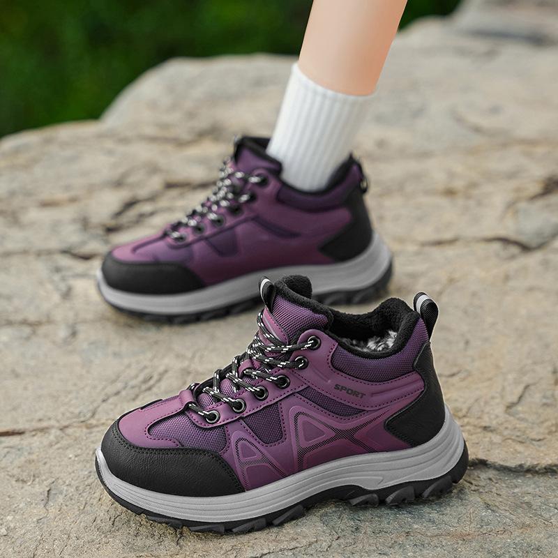 Autumn and winter new outdoor sports shoes large size rubber sole high top wear-resistant mountaineering casual warm velvet women's shoes