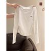 Autumn Winter Solid Irregular Folds Waist All-match Bottomed Tee Women Long Sleeve Casual Pullover T-shirt Top