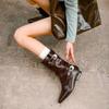 New Round Toe Square Heel Sexy Elegant Mid-calf Boots Fashionable Pin Buckle Decoration Solid Color Simple Casual Women's Shoes