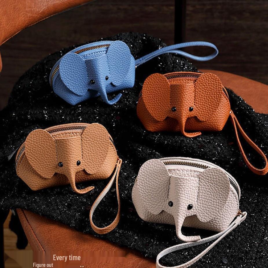 Thai Elephant PU Coin Purse - Japanese Style Keychain Pendant, Card Holder & Lipstick Zipper Bag