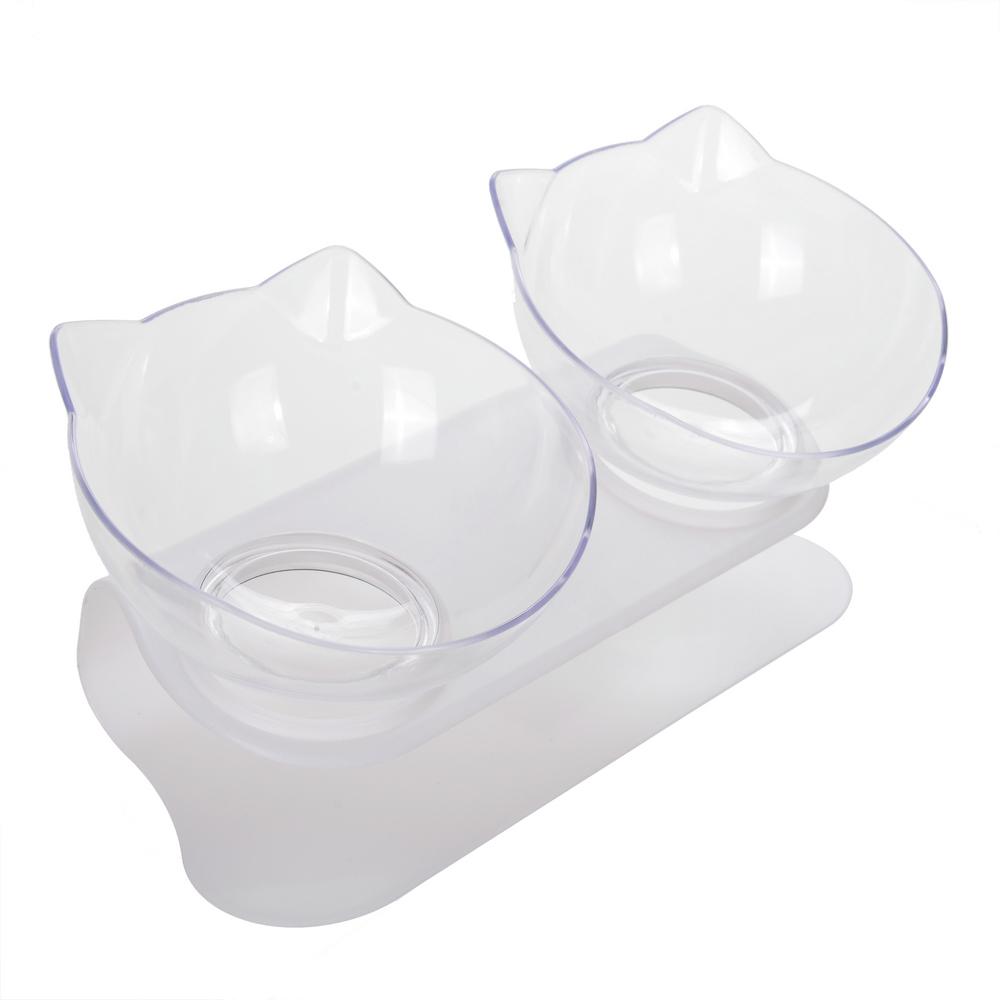 Double Kitten Bowl 2 Cat Feeder Container Tilted Pet Inclination Stand Cats PC Plastic Non-slip Feeding Bowl For Small Dogs Cats