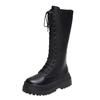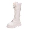 Fashion Women Knee High Boots Thick Sole Punk Style Women Motorcycle Boots Retro Square Heel Lace Up Women Boots Black White Botas Mujer