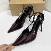 Fashion Sexy Pointed Toe High Heel Women Shoes Elegant Ankle Strap Patent Leather Stilettos Luxury Prom Weddings Bridal Pumps for Ladies