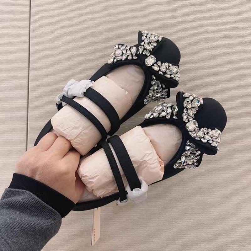 Fashion Bow Crystal Women Square Toe Sandals Flats Marie Janes Shoes Elegant Summer 2025 Trend Dress Party Shoes Lolita Loafers Zapatos
