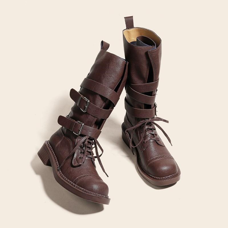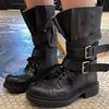 Fashion Punk Style Mid-Calf Motorcycle Boots Women Cool Buckle Design Chunky Platform Botas Leather Ankle Boots for Women Botas Mujer