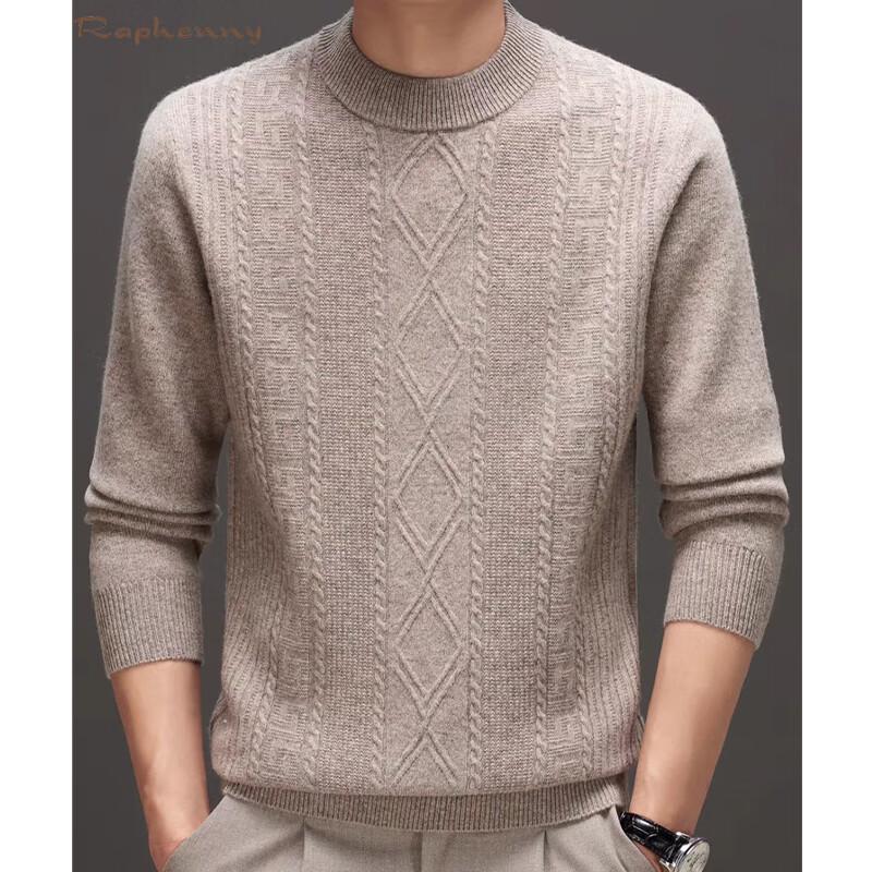 Raphenny Men's Casual Round Neck Wool Sweater AM817