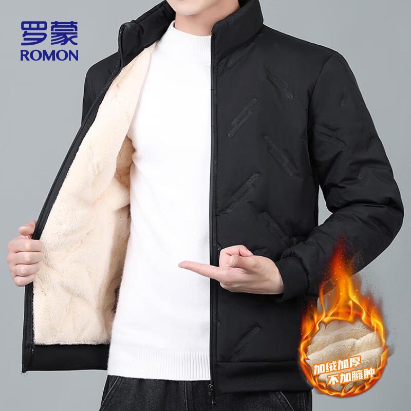 ROMON Men's Thickened Fleece-lined Stand Collar Padded Jacket ZH2588
