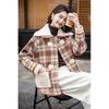 Sancai Women's Winter Plaid Boucle Toggle Button Wool Coat